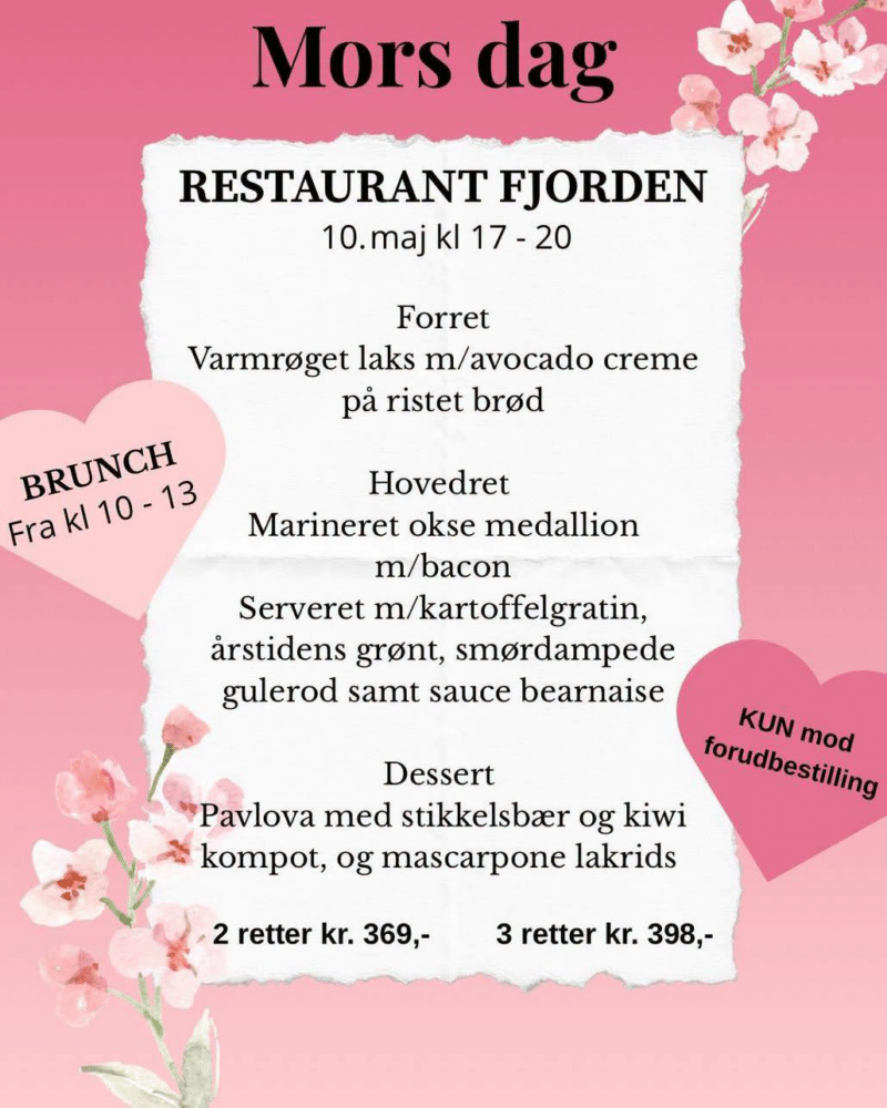 Restaurant Fjorden blev bygget i 1968 der er lift elevator og handicaptoilet. Restaurant Fjorden er en helårsforretning med selskaber, bisættelser, la carte, diner transportable og julefrokoster, eller vi sammensætter jeres ønsker til en hyggelig dag og et godt arrangement.